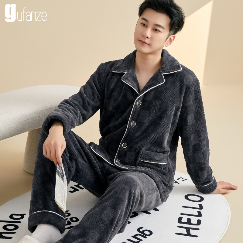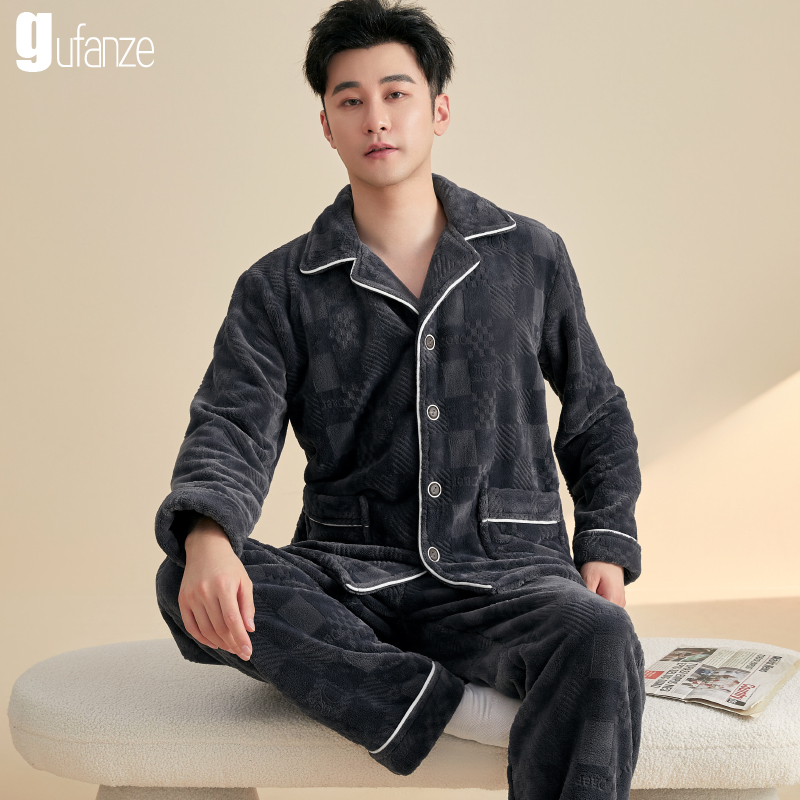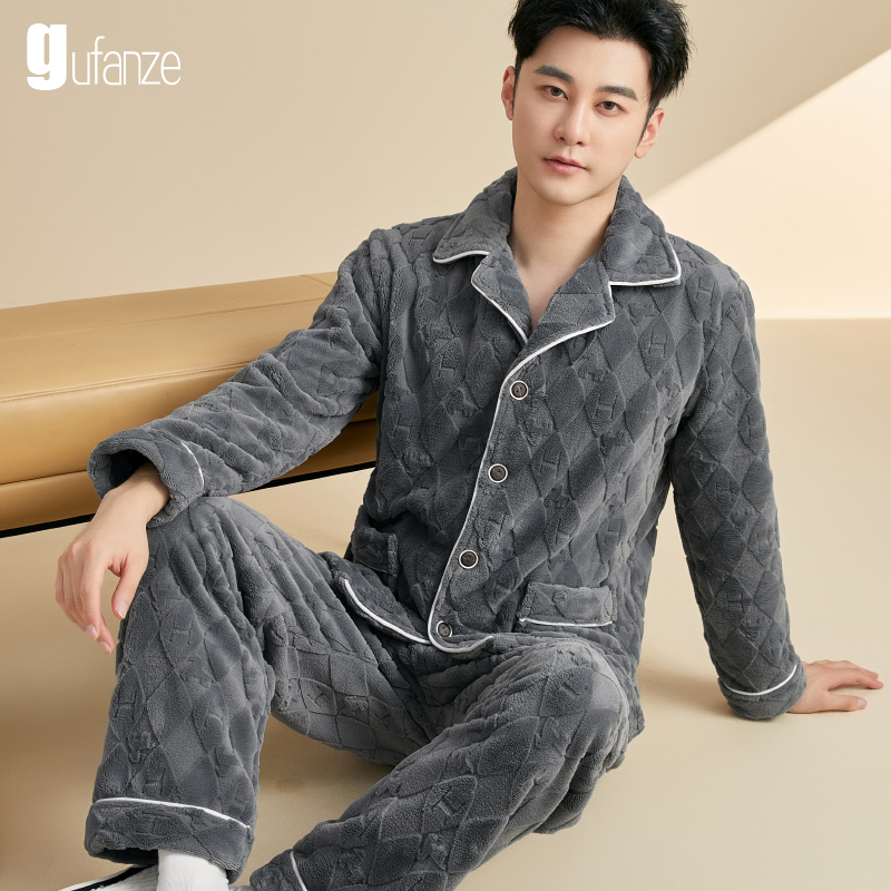 冬天套装 睡衣男士 珊瑚绒加绒加厚保暖法兰绒家居服男款 冬季 秋冬款