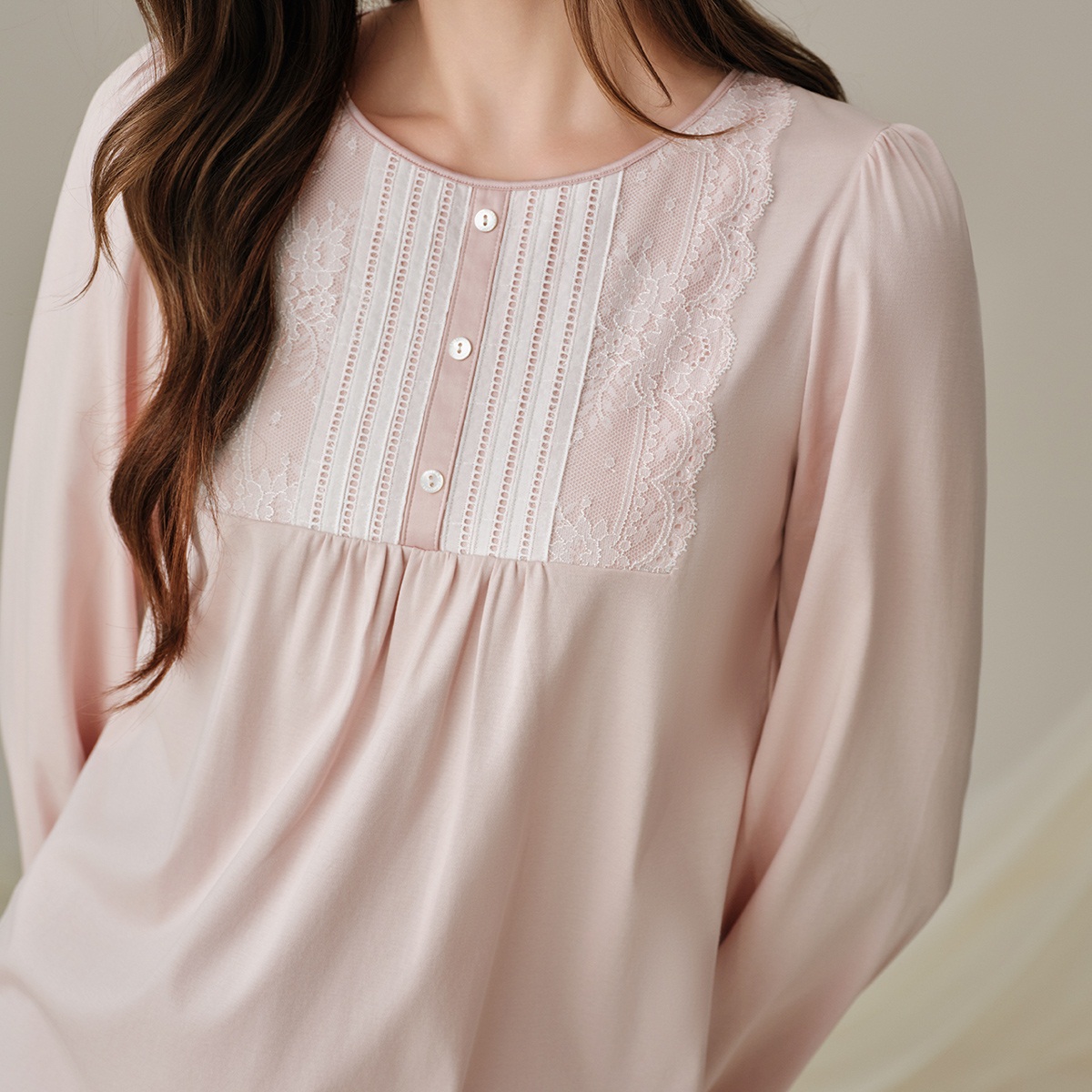 简约古风睡衣套装 长裤 女士棉透气春秋家居服长袖 安莉芳2025年新款