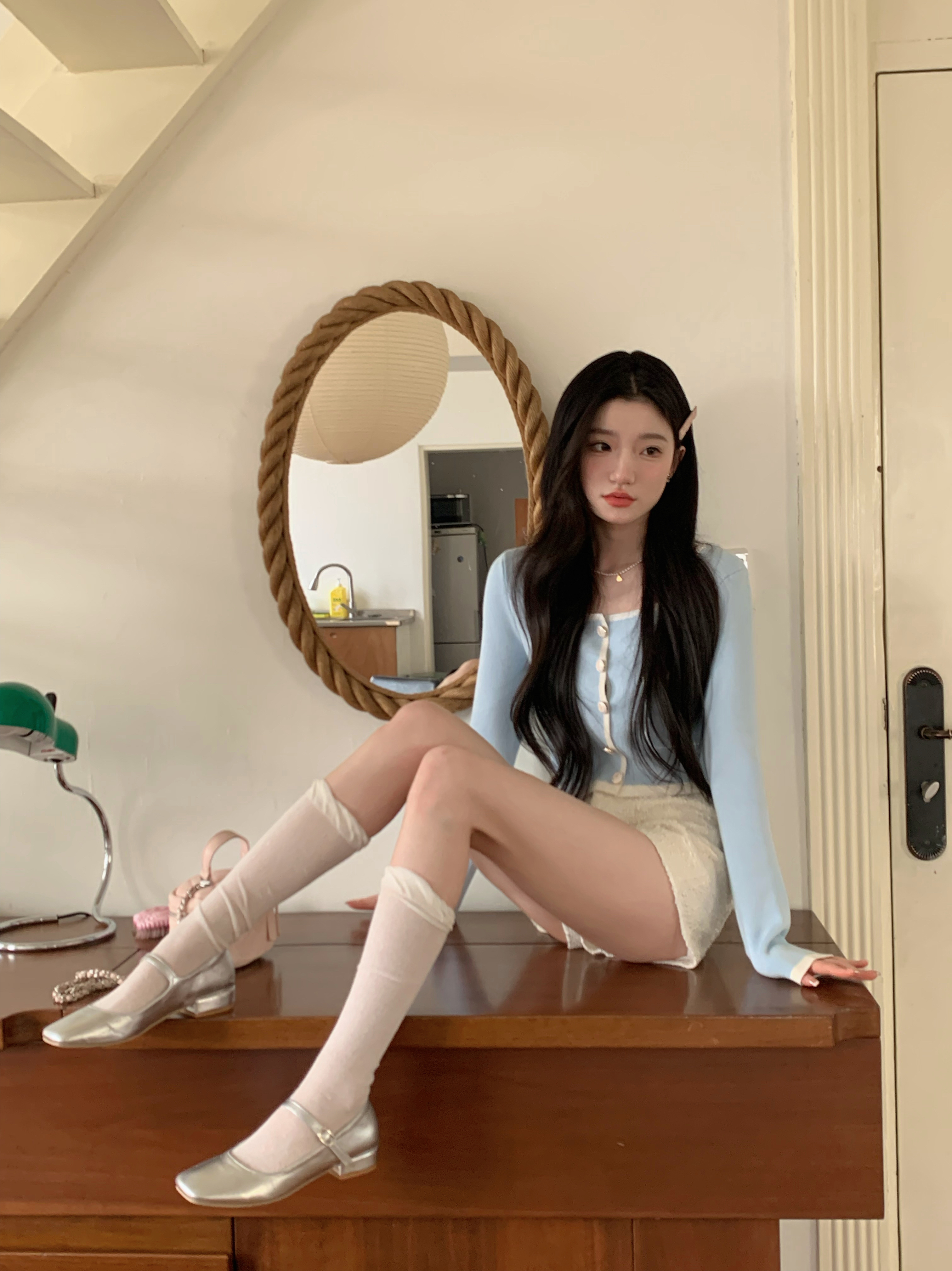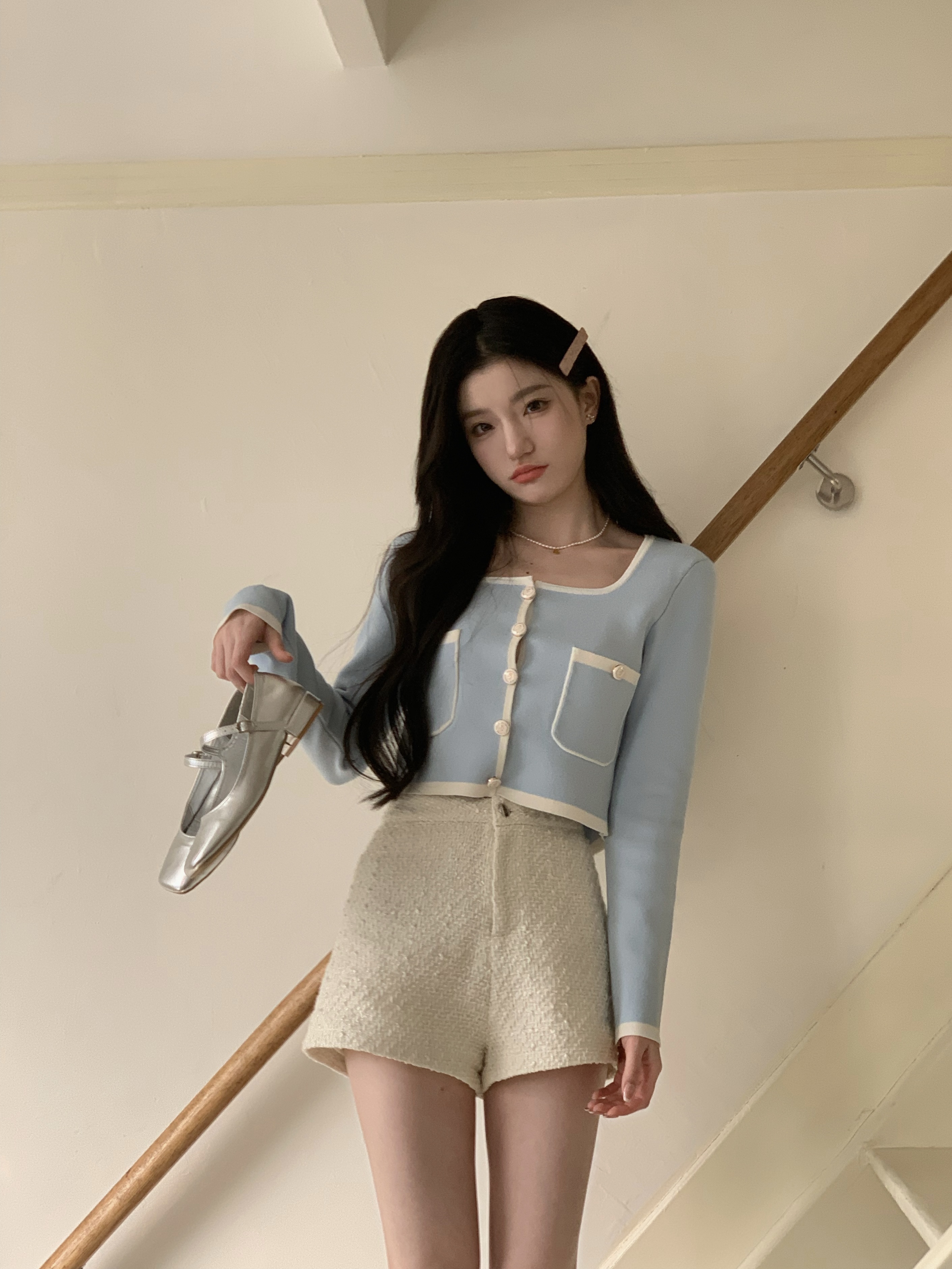 妹妹 针织衫 春和奶盖 短款 乖巧温柔上衣女 蓝白拼色修身 YYW汪澜