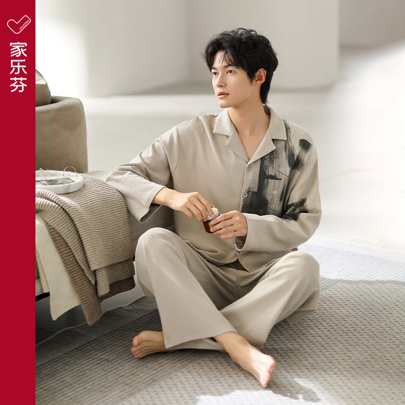 春秋款 加大码 秋季 华夫格长袖 高级感 纯棉家居服男款 家乐芬睡衣男士